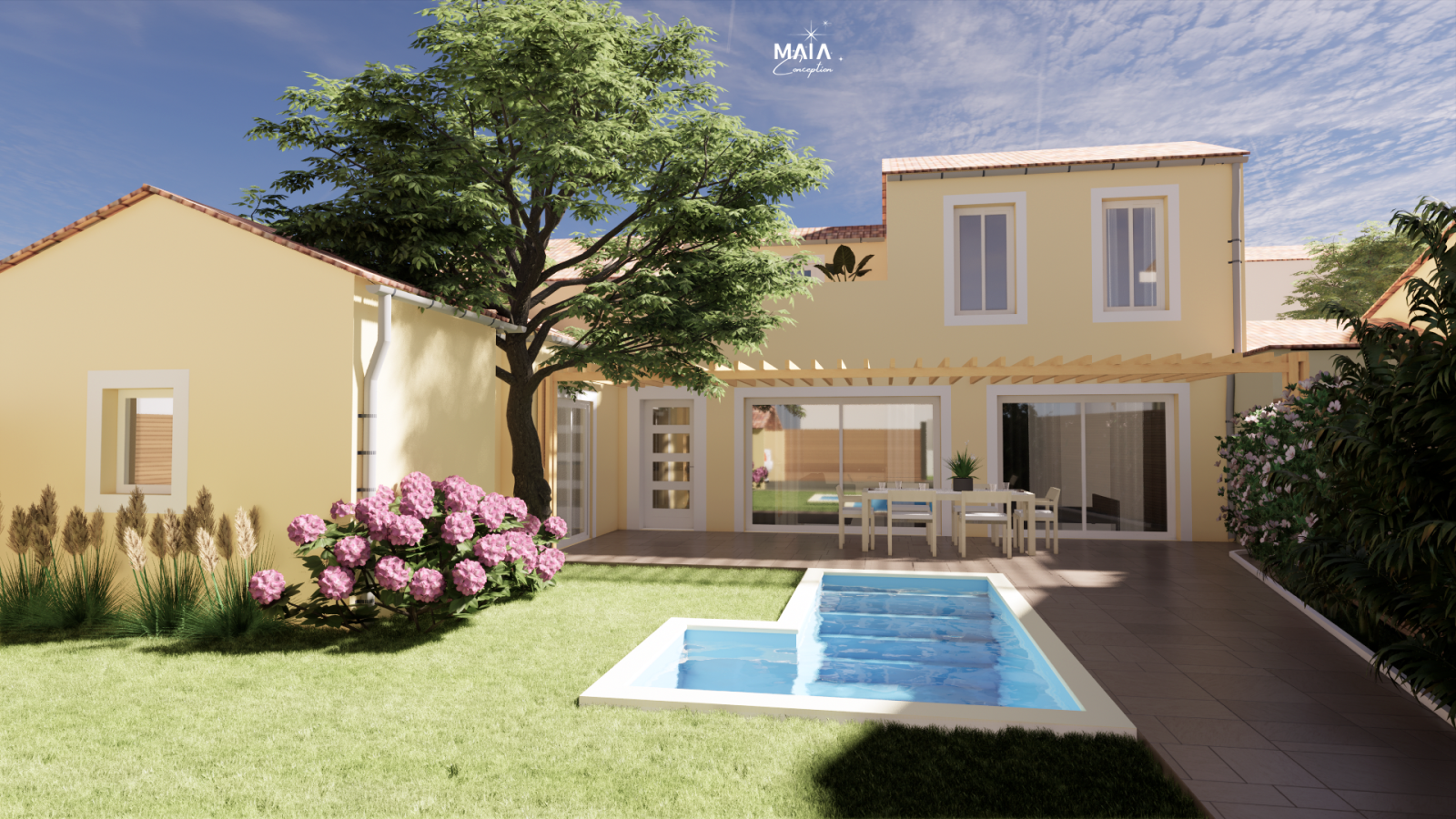Notre proposition d’aménagement met en scène cet arbre comme un élément architectural majeur : ajustement de la toiture, repositionnement des murs, optimisation des volumes… L’arbre devient un repère visuel fort et un atout paysager, tout en offrant ombre naturelle et confort thermique aux espaces extérieurs.